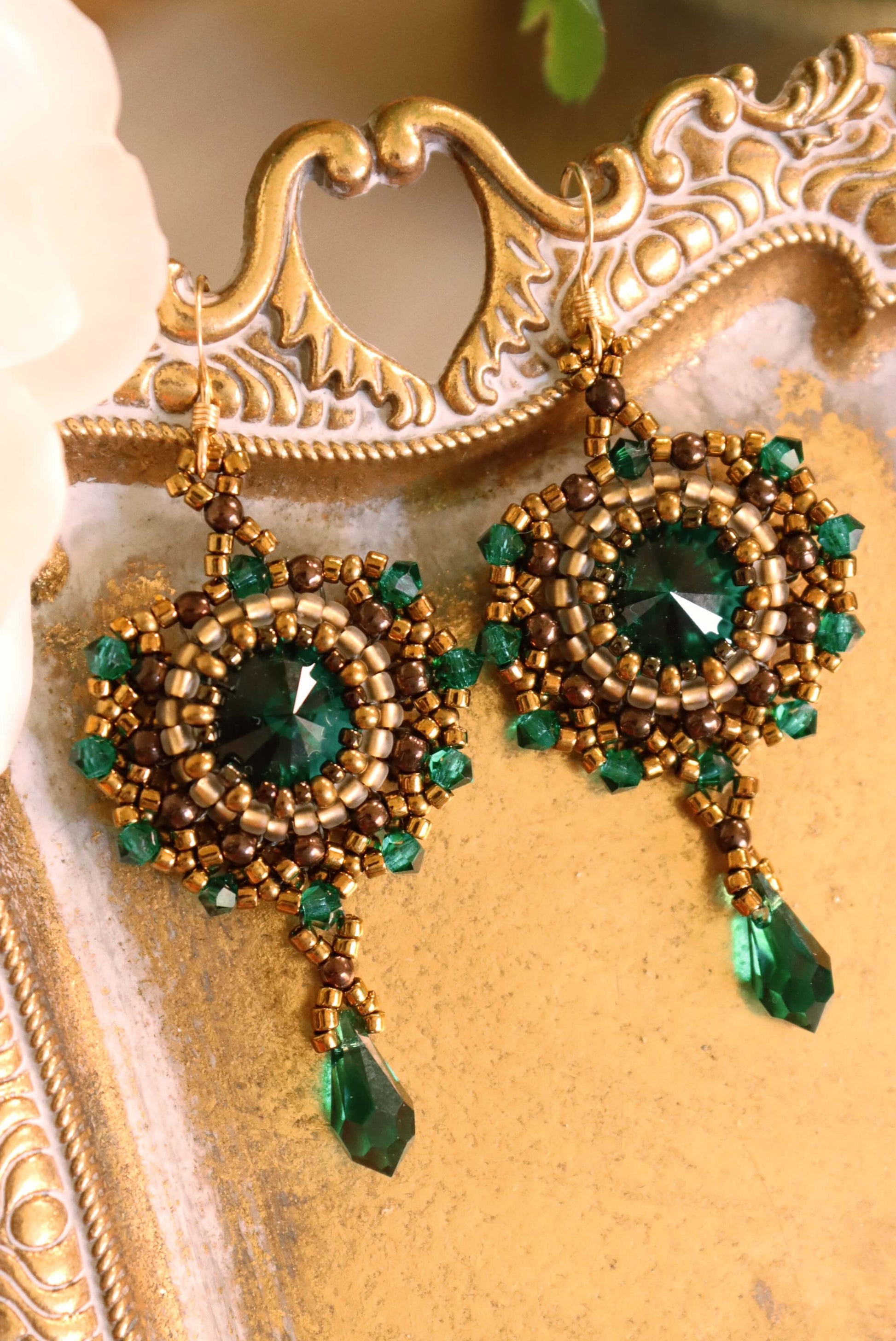 Nab a set of Emerald Green Crystal Dangle Beaded Earrings that are regal and classic.